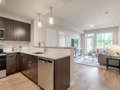 We are open to welcome you home! The Elwood is located in Happy Valley, Oregon. The Elwood is a new multi-family development located in the Taralon community. The Elwood is a collection of one, two and three bedroom floor plans. Interior features include quartz countertops, designer kitchen cabinetry, stainless-steel kitchen appliances, full size washer and dryer and a balcony with panoramic views. The Elwood offers urban convenience with controlled access entries, interior corridors, elevators, assigned parking and bike parking as well. Just two blocks from The Elwood include New Seasons grocer, local brew pubs, spa, retail shopping, restaurants, medical and dental offices. Contact our leasing team today to learn more about The Elwood.