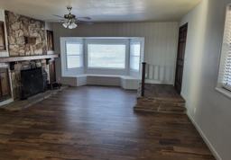 Charming details in vintage home, large rock gas fireplace in living room and dinning room.
