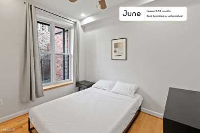 A perfect shared apartment for couples, this Shaw unit is ideally located near numerous entertainment and dining options. At 1085-square-feet, this 3-bedroom, 2.5-bathroom apartment occupies the basement and first floor of a lovely, Victorian-era rowhome on Florida Avenue. Recently remodeled, this unit comes fully loaded with ceiling fans, central heating and air conditioning, modern lighting fixtures, new stainless kitchen appliances, paid WiFi, a wall-mounted TV. This apartment also includes a washer and dryer for you to do your laundry. Recessed lighting illuminates spacious bedrooms that accommodate queen-size beds and additional furniture, such as nightstands and dressers or desks. The master bedroom on the top floor offers a private bathroom with a combination jacuzzi bathtub and shower, as well as a walk-in closet. All bedrooms include windows for natural light and can be fully furnished by June for an additional fee. The fully-applianced kitchen includes a dishwasher and beautiful granite countertops that perfectly match the cabinets and drawers. A cozy living room adjacent to the kitchen is a perfect place to kick back and relax on a sectional couch. This LeDroit Park apartment includes a back door that leads out to a small, fenced-in patio. Street parking is available in the rear.