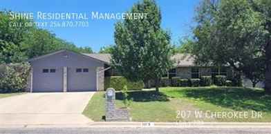 207 W Cherokee Dr is a 4 bedroom, 2 bathrooms apartment for rent. It is located in Harker Heights. It has apartment amenities including ceiling fan, outdoor space, assigned parking, on-site laundry, carpet, dishwasher, walk-in closets, air conditioning, fireplace, and microwave. Cats and dogs are allowed, making it a pet-friendly apartment.