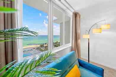 Beautiful Ocean-View Direct Beach Access – Located in the Marco Polo Resort on the Beach 1 bedroom + enclosed den / second sleeping area. 700 FEET TOTAL! 2 BEDS PLUS SOFA BED! Fully furnished and remodeled unit directly on the beach in the Marco Polo building. Enjoy direct beach access and gorgeous ocean views. ideal for families or roommates. Unit features a kitchenette. All utilities included: electricity, internet, and cable TV. Resort-style amenities include beach access, fitness center, pool, restaurant, shops, gallery, bar, and more—all within the building. Excellent Sunny Isles Beach location, close to shopping, restaurants, and nightlife.