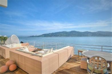 Beautifully remodeled furnished waterfront rental on the edge of Bay with views of San Francisco, Golden Gate Bridge and Sausalito. Complete privacy behind gate and fence, Fabulous living room, kitchen, dining and family room all open onto a huge deck over the bay with breathtaking views, this home is resort-like with all day sun, easy access ample parking