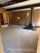 Large Living Room with Free-Standing Wood-Burning Fireplace & Vaulted Ceilings