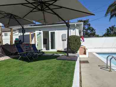 The studio comes with a fully equipped kitchen, plenty of closet space, a full bathroom, heat pump/air conditioner and access to the backyard. The unit has a queen sized bed, internet connected TV, coffee table that can be converted into a dining table for hosting a small group of guests, bed and linen and kitchenette. Washer and dryer are located a few steps away and are shared with the homeowner.