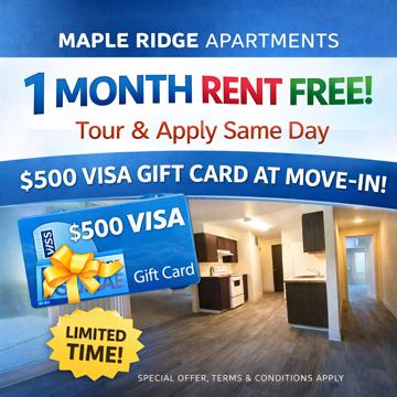 At Maple Ridge Apartments you will find spacious floor plans and superior amenities. Enjoy our park-like setting and the convenience of being minutes away from your daily destinations! We offer one, two, and three bedroom floor plans. Our property has two sparkling pools. We are located in Richland, near Lewis & Clark Grade School, Carmichael Middle School, and Richland High School with easy access to freeways. Please call for an appointment today.