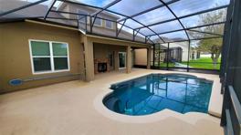 As you come into Avalon Park Village and see what it has in store for residents, you will never want to leave this gorgeous fun community. A community surrounded by lakes, shops, food, and Entertainment. Where there is a live, learn, and play mindset. This premier planned community is close to Orlando airport and within 30 minutes of the Space Coast. This two-story home features 5 rooms, the bonus 4th room to use as renters' choice is located on the first floor. Beautiful tree line and sidewalk neighborhood is inviting along with the cozy front porch to sip your morning coffee or afternoon tea. There are two master suites. One located on the 1st floor and another on the second floor that has an additional flex space as a bonus. The downstairs master comes complete with a large private full bathroom with garden tub and extra shower, and a walk-in closet as big as a room. The other two spacious bedrooms are located on the second floor. Two AC systems offered for flexible use and conserving as needed for each floor. A beautiful grand staircase leading to the second floor overlooks the main living area. An open floor concept with a dining room area, open kitchen with granite countertops and large family room. This side of the home offers a gracious view of the pool and lake. Gas two-sided fireplace can be enjoyed from the pool deck or family room. There is also an additional massive formal living room space and bonus dining room space towards the front of the home. This is a very giving floorplan and great for a large family. Extra Storage can be accommodated under the staircasing by closet. Large laundry room with hookup is located close to the garage. Pool Care and lawncare is included in rent.