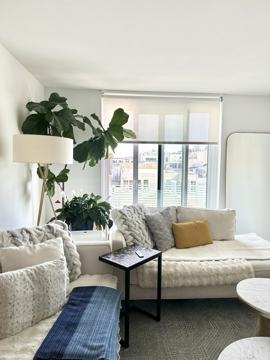 Located in Hayes Valley, this prime spot offers proximity to cultural and boutique shops, trendy eateries, and performance arts venues like the San Francisco Symphony, the Ballet, and Bill Graham Civic Auditorium. The unit is furnished with modern, practical furniture and high-end Bosch appliances, including a Dyson air purifier, Breville Oracle Touch espresso machine, microwave, and a 65" smart TV.