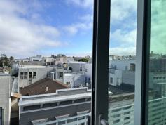 Experience the best of San Francisco living in this beautifully furnished one-bedroom, one-bath condo on a high floor of the modern 555 Fulton Street building. Enjoy serene views of Birch Street alley, Sutro Tower, and downtown San Francisco. The living room features a ceiling-to-floor door opening to a Juliet balcony for a refreshing breeze.