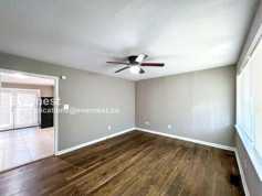 This spacious 3-bedroom, 1.5-bathroom single-family home offers 1401 square feet of comfortable living space, designed to meet your everyday needs. Key interior features include ceiling fans to enhance air circulation, central cooling to maintain a comfortable temperature, and attractive wood plank floors combined with durable tiles. The kitchen is equipped with an electric range, microwave, dishwasher, and refrigerator, providing a practical setting for meal preparation and storage. Washer and dryer hookups are available for added convenience, ensuring your laundry needs are easily managed.
