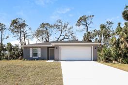 OUTDOOR SPACE: Rear covered porch ideal for enjoying the Florida sunshine. Two-car garage provides ample space for parking and storage.
