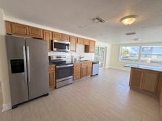 This 2-bed, 2-bath home with a garage conversion offers flexible space for a third bedroom or bonus room. Overlooking a tranquil canal, enjoy sweeping water views from expansive windows. A large deck, private boat dock, and screened-in porch create the perfect setting for outdoor living. Inside, fresh paint and vinyl plank flooring enhance the bedrooms, while the kitchen shines with stainless steel appliance and granite counter tops. This home invites you to embrace the waterfront lifestyle! This floor plan features two original bedrooms with a full bath. The garage space has been converted to provide an interior laundry room with washer and dryer hookups, a full bathroom with stand up shower, and additional living space perfect for a guest room, office, or bonus room.