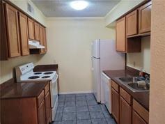 The kitchen includes a refrigerator, and washer/dryer hookups are available upstairs (washer and dryer not included). Additional storage is conveniently located under the staircase; no attic access.