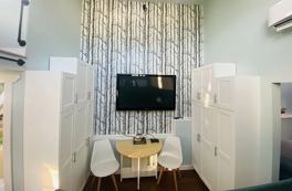Roku player. Has streaming options - available upon request. Up to 4 services (Choose from: Apple TV+, Paramount+, Hulu, Disney Plus, Netflix, Hulu).