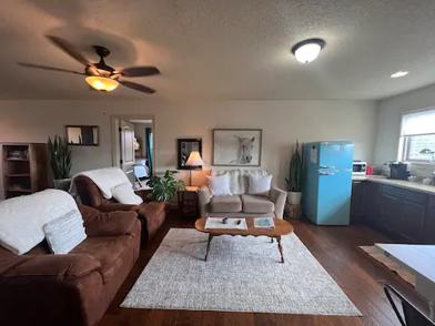 A great property for a small family or young adults wanting to live in a quiet countryside apartment. Located above a single-family home that is currently occupied, but is completely private. Uproot Farms is a quiet and peaceful place with a beautiful pond and mountain views. Relax out on the back porch, watching gorgeous sunsets behind the mountains.