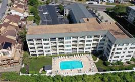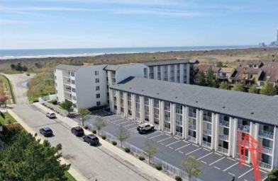 Weekly summer rental. Experience coastal living in this modern second-floor condo complex on the beach block with a large community pool. This 1 bed, 1.5 bath condo features an inviting deck perfect for soaking in the ocean breeze. The bedroom features 2 Queen size beds and there is a futon in the living area for additional sleeping. The open layout seamlessly connects the living and dining areas to a sleek kitchen equipped with stainless steel appliances. 2 assigned parking spots. Use the elevator for convenience or steps. Short walk through the dunes on the southend to the beach. Ideally located close to the community center, pickleball courts, tennis courts and mini golf.