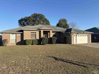 Four bedroom home near Whiting Field! Open floor plan. Tile entry. Great room with cathedral ceiling. Formal dining room plus breakfast nook. Fully equipped kitchen with pantry & center island. Split master suite with double vanity, walk-in closet, whirlpool tub & separate shower. Inside laundry with washer & dryer which are "as is" - no warranty. Open patio. Privacy fenced backyard. Small dogs considered with owner approval .