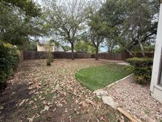 Lovely 3-bedroom home in Block House Creek — upstairs features three full-sized bedrooms including a spacious master suite with abundant natural light through numerous windows. Downstairs is open and airy with soaring ceilings, tile flooring throughout the main level, a dramatic wall of mirrors that reflects the dappled light from the mature oak trees on the property, and lots of windows creating a bright, welcoming ambience. The kitchen has a breakfast area, and the half bath plus included washer/dryer and refrigerator add extra convenience. Newly-installed window treatments (many battery-powered) are included. Two-car garage. The backyard is a standout: large, open, beautifully landscaped with many trees and a charming, private feel. Excellent commuter access — near Hwy 183, 183A and the commuter rail line into Austin. The neighborhood amenities are a big plus too: Block House Creek offers trails, pools, parks and sports fields. One of the best values and locations in Leander.