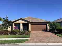 Step into resort-style living in this gorgeous home nestled within the highly sought-after 55+ Del Webb golf community. Mornings on the lanai are simply breathtaking, offering serene lake views and a sparkling saltwater pool-your own private oasis to start (or end) the day. This social membership home grants access to Del Webb's impressive array of amenities, perfect for those who love an active, social lifestyle. Golf enthusiasts will appreciate the Panther Run Golf Course, an 18-hole public course located right within Del Webb. At Del Webb Naples, amenities rival those of a luxury resort-enjoy dining at the Rusty Putter Restaurant, unwind at the resort-style pool, or stay energized in the state-of-the-art fitness center. Recreation abounds with pickleball, tennis, bocce, billiards, and even a golf simulator. Additional features include access to a one-car garage. At least one renter must be 55+. No pets. No smoking or vaping. Ave Maria-once you get here, you "get it".