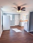 Step inside to find a bright and freshly painted interior featuring new luxury vinyl plank flooring throughout. The spacious living area is filled with natural light and flows seamlessly into the dining and kitchen areas, creating an inviting open feel.