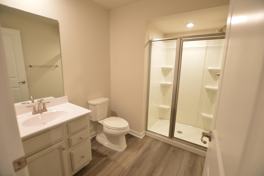 The lower level of the home is features a large recreation room, and a full bathroom, perfect for entertaining or as a guest suite.