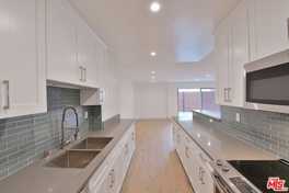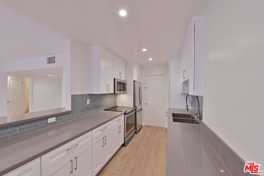 This modern 1 bedroom apartment features an open concept living area with wood style flooring, recessed lighting, and a beautifully updated kitchen with quartz countertops, sleek cabinetry, and a stylish glass tile backsplash. Large sliding doors lead to an oversized private patio, perfect for entertaining or relaxing outdoors. Freshly renovated and filled with natural light, this home offers a comfortable layout with contemporary finishes in a prime location.
