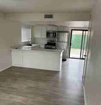 AVAILABLE April 1st for 1 year minimum lease. Must See! Boutique 4 unit complex. Updated! 2 bedroom/2.5 bathroom - 1263 sq ft. Newer kitchen appliances and updated bathrooms, kitchen, paint and flooring. Entry on ground floor - living room, kitchen and powder room. Upstairs are 2 bedrooms with a balcony and 2 bathrooms. Private fenced patio and Community Pool. All appliances included (refrigerator, stove, dishwasher, washer & dryer). Attached 1-car garage with washer and dryer area. On site security cameras. Tenant pays electric, gas & cable/internet. Landlord pays for water, trash , gardener and pool. Pets allowed by submission (with additional deposit). Application and credit report required. (NOTE: Property photos are of another unit - same floor plan, just mirror image/reversed from this unit).