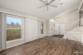 Lovely contemporary multi-level home with scenic park views, located on a quiet Darien street. Features a spacious kitchen with newer cabinets, stainless steel appliances, and sliding door. Bright living room with vaulted ceiling and wood laminate flooring. Generously sized family room with wood-burning fireplace. Updated baths, carpeted bedrooms, porcelain tile entry, kitchen and baths. Enjoy a private patio, covered sunroom/deck with skylight, and fenced backyard along the rear for added privacy. 1-car garage plus 2-car wide driveway. Convenient to shopping, dining, parks, expressways, and Metra. Dogs allowed with additional pet deposit and monthly pet rent. No cats, puppies, or aggressive breeds.
