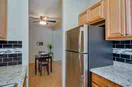 This partially remodeled home features honey oak cabinets, black/white speckled counters, a custom black/white/silver tiled backsplash, under cabinet lighting, ceramic tile flooring in the kitchen and plush wall to wall carpeting throughout the rest of the home.