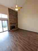 Discover the perfect blend of style and functionality in this stunning home. Designed with a highly sought-after floorplan, this residence offers a private bedroom and full bath on the main level, complemented by a second bedroom suite upstairs. The upper retreat is a true standout, featuring a massive walk-in closet and a dedicated built-in desk area—perfect for a home office or creative hub. Every corner shines with designer details, from the cozy gas-log fireplace to modern ceiling fans and durable, easy-care siding. Step outside to the covered patio, an ideal sanctuary for your morning coffee or hosting evening gatherings. With its dual-suite setup, this is an exceptional layout for roommates or guests. Enjoy resort-style living with access to the sparkling community pool. $75 admin fee is due upon approval and signing of lease.