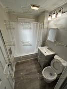 Spacious and bright upstairs apartment featuring large windows, fresh gray-painted walls, and plush dark carpeting. This unit includes multiple rooms with vintage-style trim and ample natural light. The layout offers a comfortable living space with a cozy atmosphere. Located in a quiet neighborhood, it's perfect for anyone seeking a peaceful yet convenient home. Close to local amenities and public transportation.