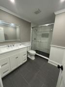 New "soft close" cabinets in kitchen w quartz countertops w subway tile backsplash