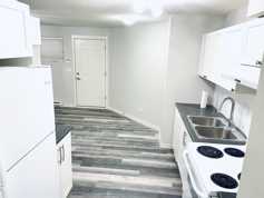 Features include: contemporary kitchen with ample space to entertain, NEW paint, NEW contemporary lighting fixtures, NEW contemporary vinyl plank flooring, laminate countertops, custom cabinetry, stove, refrigerator and dishwasher.