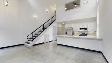 Willowview Lofts is a highly desirable design & location. This two bedroom two bath has polished concrete floors, soaring 19 foot ceiling in living/kitchen area, modern slick design, soothing monochromatic paint and cabinet color scheme, faux marble oversized quartz kitchen island and countertops, first floor bedroom, bathroom and laundry, upstairs bedroom with ensuite bathroom, private patio, two car garage, very modern and very clean.........and close to all that is wonderful about Louisville!
