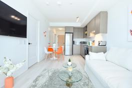 This Luxury 1 Bdr + 1 Den Fully Furnished & All Inclusive Unit Comes With Contemporary Finishes, Stylish Design And Functional Layout. Included 9 Ft Ceiling, Laminate Floor, S/S Appliances, Quartz Countertop, Motorized Automatic Blinds And More.