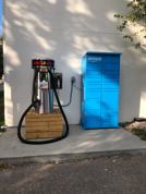 Washers and dryers in common laundry room.