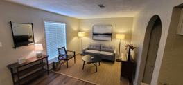 No need to stay in a noisy hotel without a full kitchen and different neighbors every night. This is a small apartment complex with a laundry room steps away and a property manager who lives on-site.