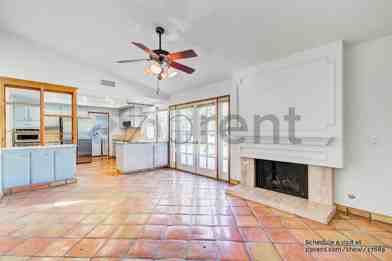 One-of-a-kind Spanish-inspired home. All the door jams are custom and the living room features pine beams and a custom pine closet. Gas fireplace, with a custom wood mantle and marble hearth, The house has Saltillo tiles throughout with exception of the bedrooms which have laminate floors. Central heating , air conditioning, ceiling fans, inviting backyard perfect for gatherings. Washer/Dryer provided! The kitchen comes with a refrigerator, electric range, and dishwasher. Attached 2 car garage.