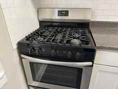 Full new size stainless steel refrigerator, gas stove, built in microwave.