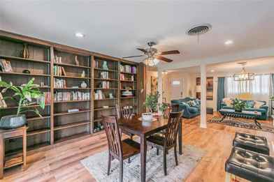 Enjoy a private, fenced backyard with a spacious wooden deck, perfect for outdoor relaxation, dining, or quiet evenings at home. Built in bookshelves add character and practical storage, while the single level layout supports easy accessibility throughout the home.