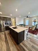 This newer ranch home was built in 2021 and has approximately 2,500 finished SqFt. This home has an open floor plan with 9ft ceilings and a finished basement, complete with window treatments. The kitchen opens to the spacious living and dining room area. The kitchen features quartz countertops, a large island/breakfast bar with sink, stainless steel appliances that include a gas oven, refrigerator, and dishwasher. There are 2 bedrooms on the main floor plus a large study with French doors. The primary suite is spacious and located in the back with a walk-in closet, ceiling fan and ensuite bathroom with linen closet, shower, and double vanity. The finished basement has a large family room, 3rd bedroom and bathroom. There is also lots of additional storage room in the basement. There is a laundry room area and mud room area off the attached 2 car garage on the main floor
