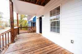 The main level features hardwood floors and an open living and dining area that creates an inviting common space. Upstairs features two additional bedrooms, a full bath, and a versatile flex/living room, and one of the bedrooms even includes a private porch.