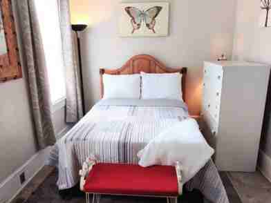Totally furnished with appliances provided, hardwood floors, large rooms, fenced back yard, all make this a comfortable place to stay. In an established neighborhood with off-street parking. Smart TVs and wifi (limited electrical sources).