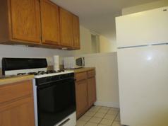 The spacious two bedroom or use the 2nd room as a den/office/dayroom/media room and one bath residence has a private entrance and is slightly below grade. The eat-in-kitchen is equipped with a refrigerator and gas range, and generous counters space with oak cabinetry. The bedroom and den are spacious with generous closet space in each. The bathroom is large and can accommodate a storage chest, etc. The unit has access to free laundry behind the bathroom area. The landscaped rear lawn is great for relaxing during the summer and fall season. NO DOGS NO CATS NO PETS NO SMOKING. We will not accept a short term rental