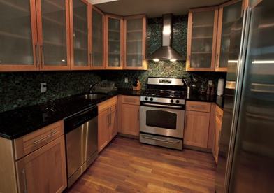 * Stunning kitchen with granite counter tops and glass-faced cabinets
