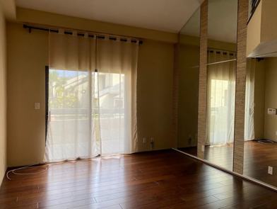 The BEDROOM fits a queen-sized bed comfortably and has ample closet space. The bedroom carpet has been upgraded to laminate flooring.