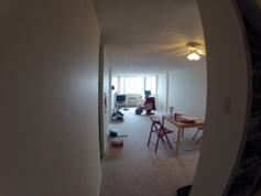 The apartment is large, has a spectacular view of the river and an air conditioner. You have the choice of picking the bedroom or the open-concept half of the living room - it is important that you're comfortable with this. I'll be splitting the living room with a screen divider to make another room (this is why the rent is low :) ).