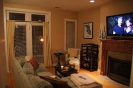 Beautiful tiled bathrooms/AC/Working gas fireplace/GARAGE PARKING INCLUDED/storage unit in basement/BIG back patio can fit table and chairs and grill.