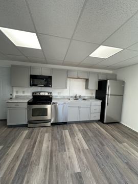 Freshly updated and move-in ready, this bright and spacious unit features an open-concept kitchen and living area with crisp white cabinetry, modern countertops, and sleek black appliances. Enjoy durable wood-look flooring throughout, abundant natural light, and a clean, neutral color palette that complements any style. The home offers two comfortable bedrooms with ample closet space, along with a refreshed full bathroom featuring a tub/shower combo and updated finishes. Designed for easy maintenance and everyday convenience, this well-laid-out unit provides both functionality and comfort—perfect for anyone seeking a clean, updated rental ready for immediate move-in.