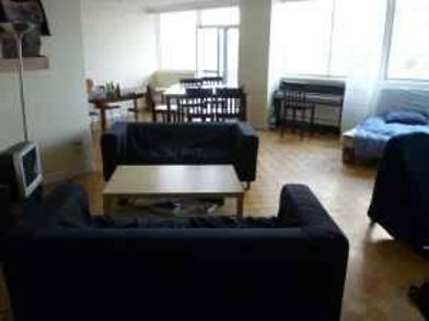Entirely furnished room for rent in spacious 4 bedroom apt (About 200m²/1942 sq ft). Apt with large living room, fully equipped kitchen, three bathrooms, three toilets, two balconies with the most amazing view of Montreal. Building with swimming pool, doorman, gym, laundry, dep, 5min from McGill and Concordia. Big room with balcony access! Come visit now! You won't be disappointed.
