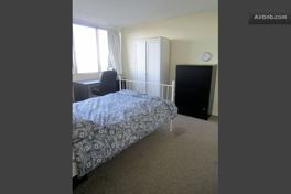 Le prix de la chambre tout inclus est 715 dollars (electricité, eau, chauffage) et la chambre contient un lit double, un grand bureau, une chaise de bureau et beaucoup d'espace de rangement.